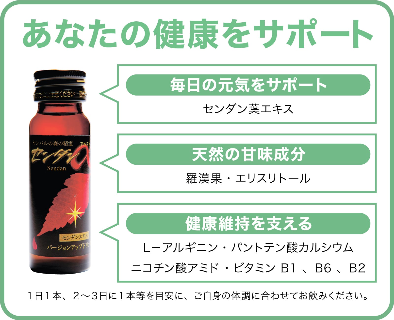【毎日の笑顔を支える健康飲料「センダンα」】